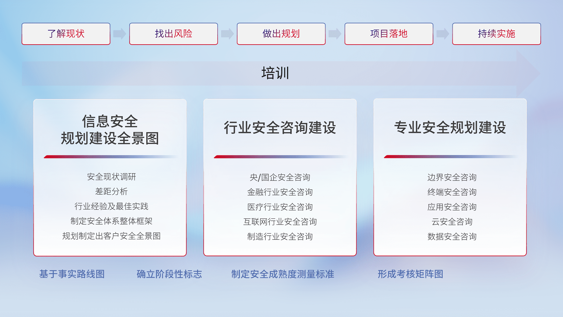 针对客户行业特性,,将宏观的安全战略和需求,,通过专业的交付服务,,,实现项目落地,,,,为客户提供标准规范的集成交付服务。。。